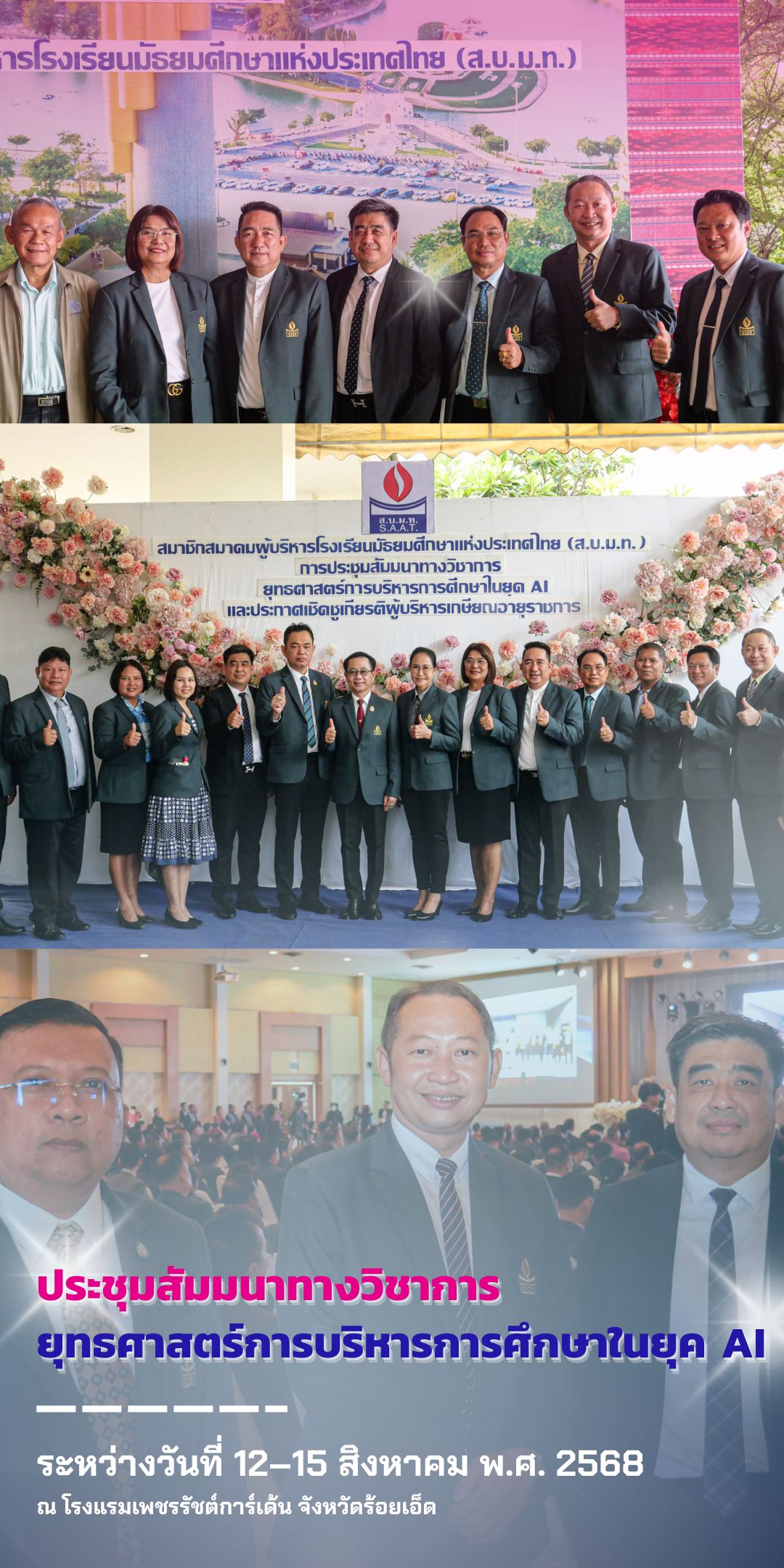 การสัมมนาครั้งนี้จัดขึ้นระหว่างวันที่ 12 – 15 สิงหาคม 2568 โดยมีวัตถุประสงค์เพื่อแลกเปลี่ยนองค์ความรู้และแนวทางการบริหารจัดการศึกษาให้สอดรับกับการเปลี่ยนแปลงในยุคปัญญาประดิษฐ์ (AI) ภายในงานมีการจัดเวทีเสวนาและการบรรยายพิเศษจากผู้ทรงคุณวุฒิในแวดวงการศึกษาและเทคโนโลยี ตลอดจนกิจกรรมสร้างเครือข่ายความร่วมมือระหว่างผู้บริหารสถานศึกษาจากทั่วประเทศ เพื่อยกระดับคุณภาพการศึกษาไทยให้ก้าวทันการเปลี่ยนแปลงของสังคมโลกอย่างมั่นคงและยั่งยืน