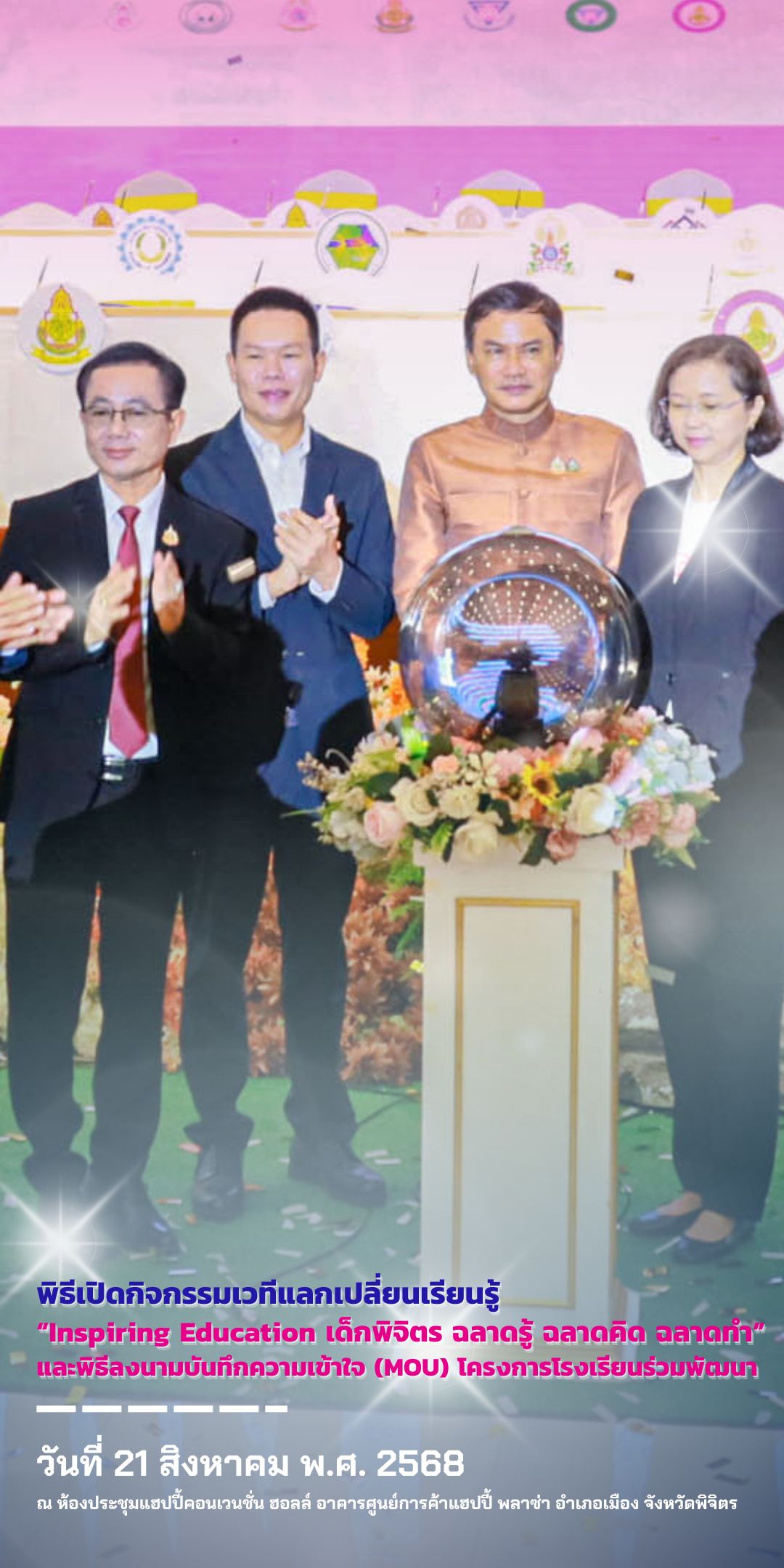 พิธีเปิดกิจกรรมเวทีแลกเปลี่ยนเรียนรู้ “Inspiring Education เด็กพิจิตร ฉลาดรู้ ฉลาดคิด ฉลาดทำ” และพิธีลงนามบันทึกความเข้าใจ (MOU) โครงการโรงเรียนร่วมพัฒนา