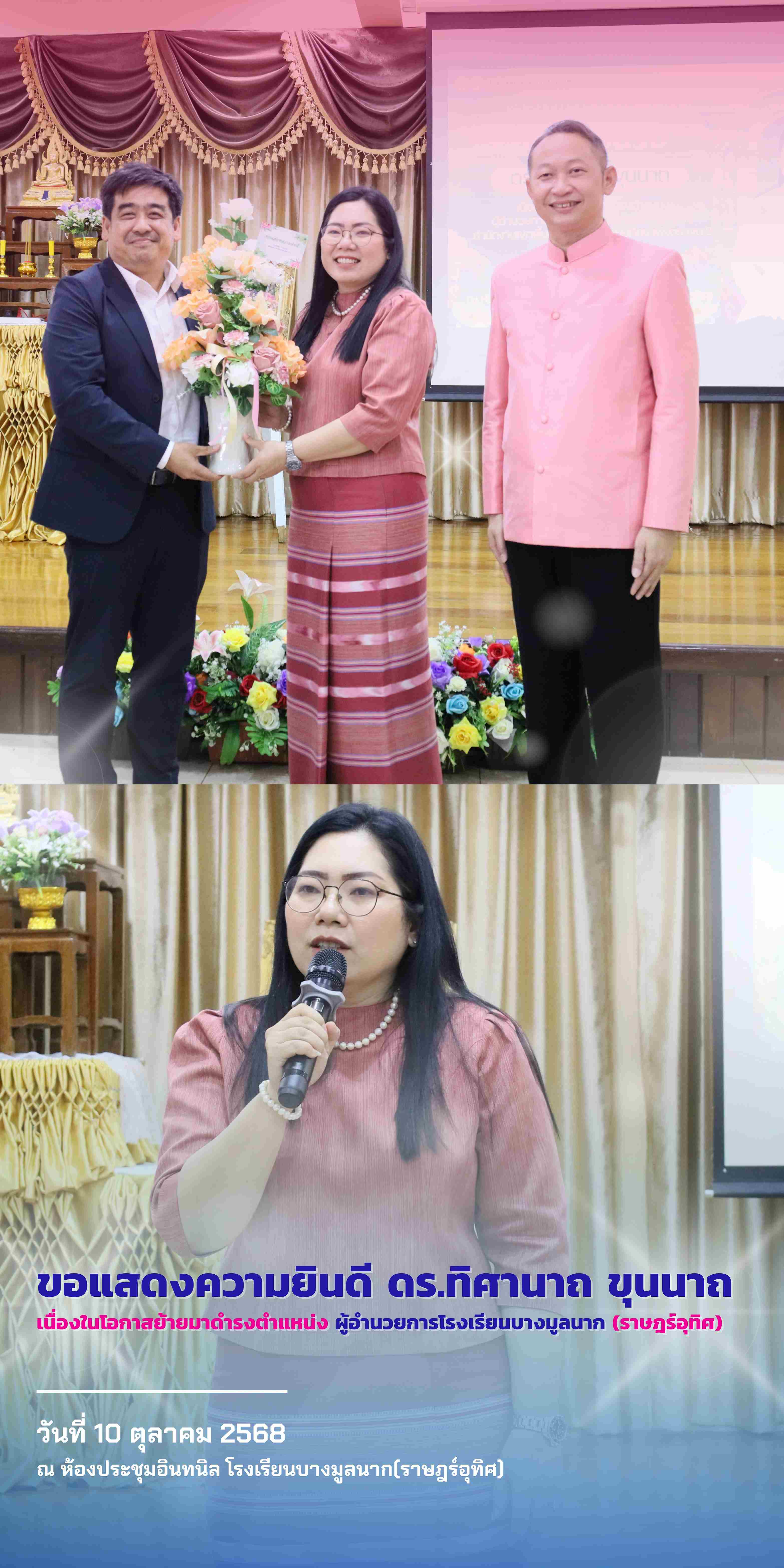 ร่วมแสดงความยินดีกับ ดร.ทิศานาถ ขุนนาถ เนื่องในโอกาสย้ายมาดำรงตำแหน่ง ผู้อำนวยการโรงเรียนบางมูลนาก (ราษฎร์อุทิศ)