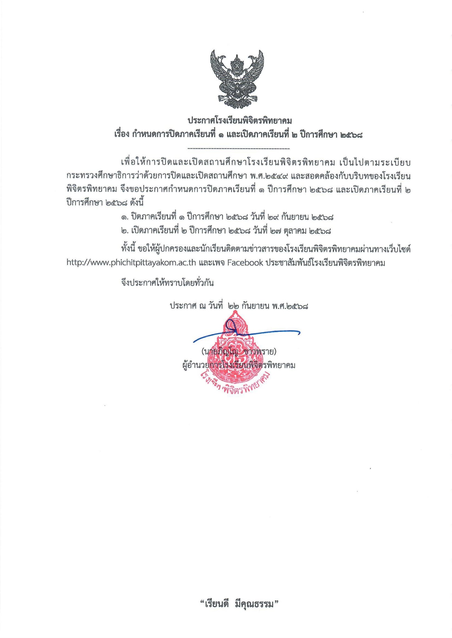ประกาศการปิดเรียนเทอม 1 ปีการศึกษา 2568 และกำหนดการเปิดเรียนเทอม 2 ปีการศึกษา 2568